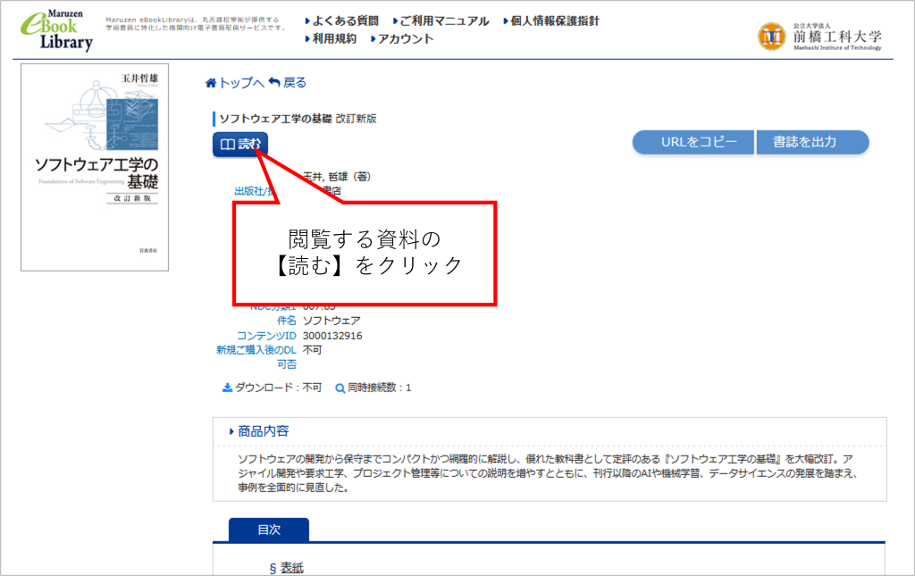 ・URLをクリックすることで、Maruzen eBook Libraryに遷移します。
